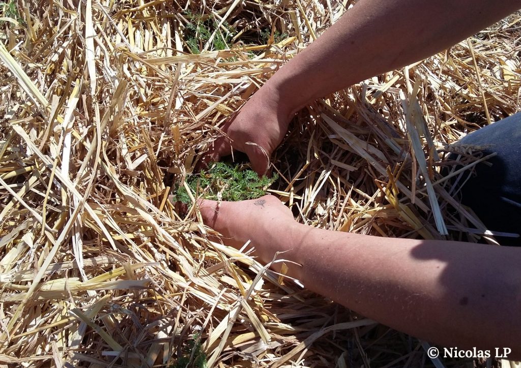 Ma formation agricole m’a appris une chose essentielle en terme de travail du sol : ne rien faire à moins que ce ne soit absolument nécessaire. J’ai la chance de constater que la ferme possède une terre de grande qualité agronomique qui facilite la croissance et l’installation de mes PAM. Mon travail d’occultation a suffit à me permettre d’avoir des planches quasiment prête à la plantation, je n’ai pour l’instant fait aucun travail de sol mécanisé, même si je n’exclut pas d’y avoir recours au besoin. Je cultive la terre selon le cahier des charges de l’agriculture biologique et l’obtention du label est en cours, les terres de la Ferme des Maisons Neuves étant en bio depuis longtemps cette dimension du travail agricole était dès le départ un sine qua non, bien que cela ait été une évidence pour moi depuis toujours. En stage chez Baume Shanti je fais aussi la découverte du cahier des charges du syndicat des simples, un syndicat qui regroupe maintes fermes de production de PAM à travers la France et qui a des principes qui me parlent et qui correspondent à mon envie de pratiquer l’agriculture et si je ne suis pas encore dans la démarche de demander le label, je commence à dessiner l’évolution de ma ferme dans ce sens.