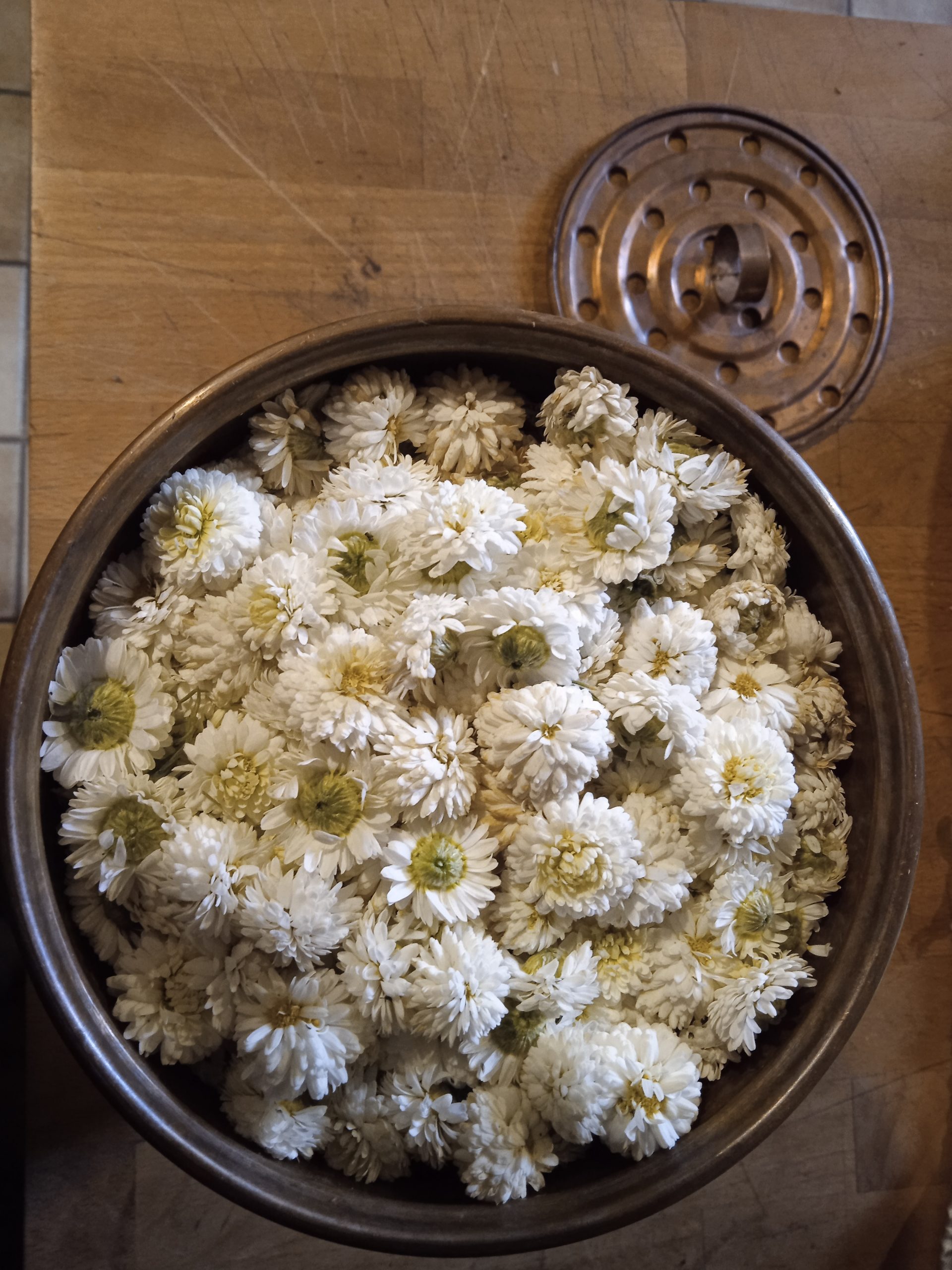 Distillation des fleurs de camomille romaine, dite aussi camomille noble.